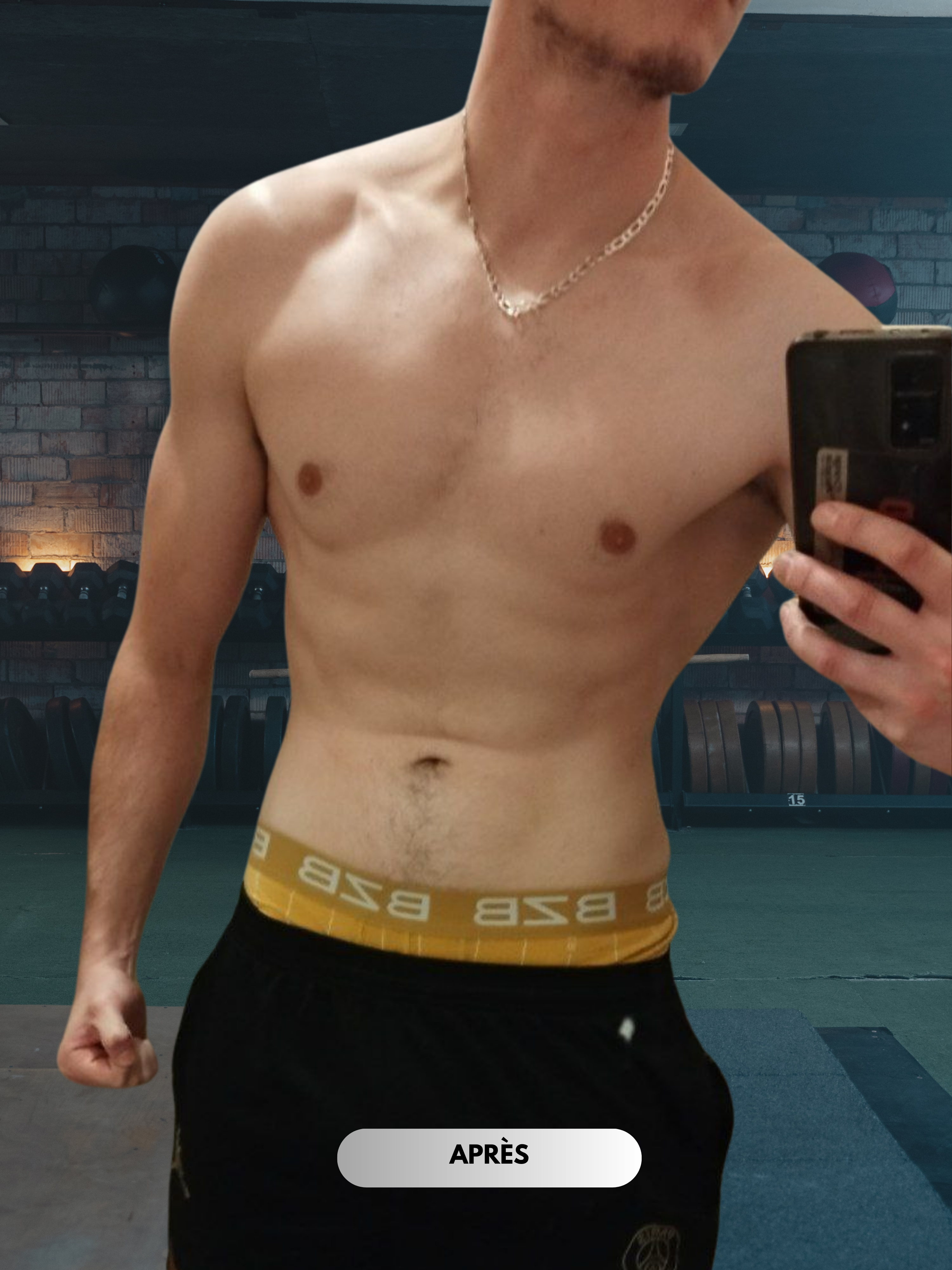 Aujourd’hui, son avant/après parle de lui-même : une prise de masse impressionnante, un physique plus dense, plus fort, et surtout une fierté immense du chemin parcouru.